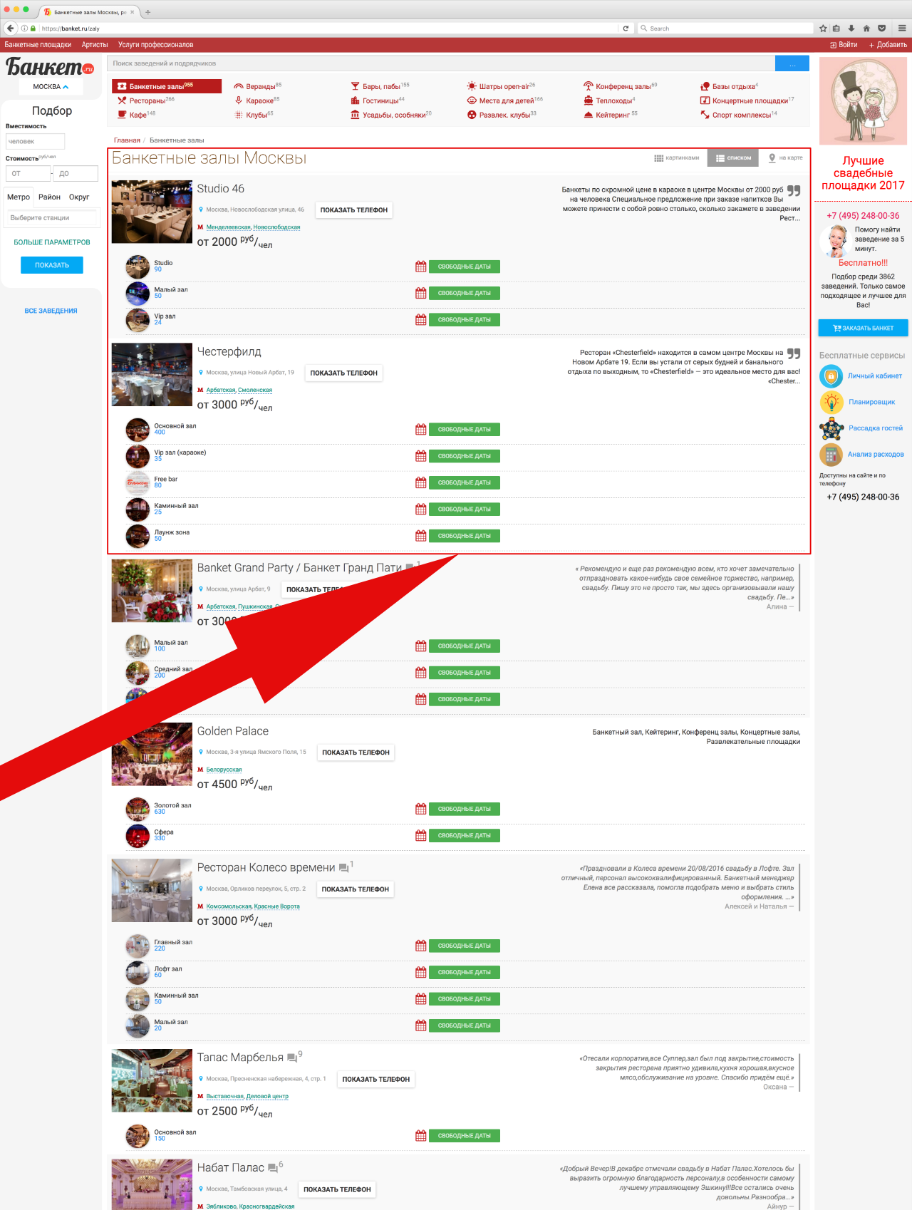 Предлагаем разместить информацию о вашей банкетной площадке на нашем сайте. Это многократно увеличит видимость вашего объявления и количество просмотров от потенциальных клиентов. Стоимость и описание размещения объявлений, а так же варианты отображения приведены ниже.