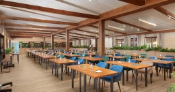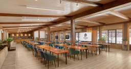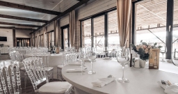 Просторный и светлый зал с панорамными окнами, открывающими потрясающий вид на праздничный каток зимой и тренировочную площадку для конного спорта летом. Уникальный интерьер сочетает уют и радость, а современное оборудование делает его идеальным для праздничных мероприятий. Выход на открытую веранду добавляет возможность дополнительного оформления в праздничном стиле, придавая атмосферу уюта и радости. Проведение мероприятий до 280 гостей.